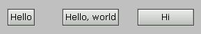 Например, следующий рисунок показывает кнопку с установленным флагом Pt_RESIZE_X_ALWAYS при изменении надписи с "Hello" к "Hello, world" и к "Hi".
