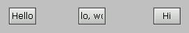Например, следующий рисунок показывает кнопку, у которой не установлены никакие флаги изменения размеров, при изменении надписи с "Hello" к "Hello, world" и к "Hi":