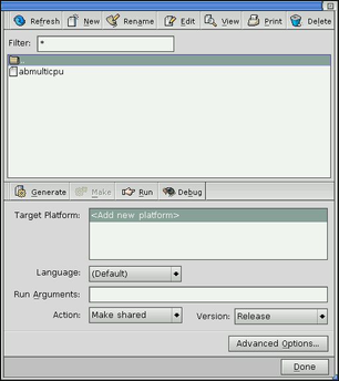 Рассматривайте диалог "Build+Run" как центр разработки для создания Вашего приложения. Из этого диалога Вы можете:
