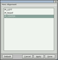 1. Щёлкните на Pt_LEFT или Pt_RIGHT, затем щёлкните на кнопке "Apply". Вы увидите, что текст кнопки переместится к левому или правому краю кнопки.