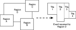 По умолчанию генерируемый событием начальный набор прямоугольников содержит один прямоугольник, размеры которого обычно являются размерами генерирующего региона. Когда событие проходит через пространство событий, его взаимодействия с другими регионами может привести к тому, что какие-то части этого прямоугольника могут быть удалены. Если это происходит, прямоугольник разделится на набор меньших по размеру прямоугольников, которые представляют оставшиеся части: