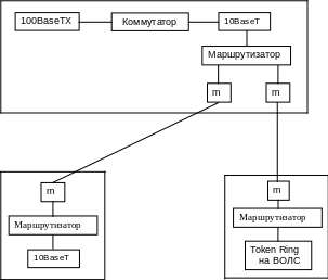 Центральный офис фирмы: сети 100BaseTX (НВП 5-й категории), 10BaseT. В каждой сети имеется по одному файловому серверу и по 20 рабочих станций. Обе сети построены на базе оборудования фирмы Allided Telesyn.