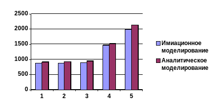 | 5 | Аналитическая Имитационная | 0,986 0,999 | 0,246 0,251 | 0,246 0,253 | 0,246 0,268 | 2133,02 1989,66 |