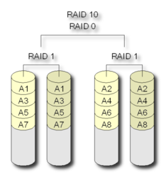 Архитектура массива RAID 10 представляет собой массив типа RAID 0, сегментами которого являются массивы RAID 1 (рис. 2.1).