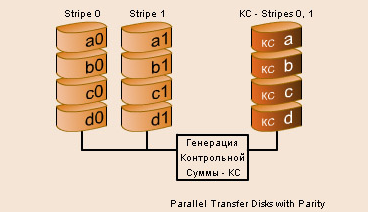 Отказоустойчивый массив с параллельной передачей данных и чётностью RAID3.