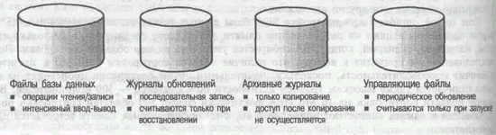 Как показано на рис. 2, на каждом файле базы данных выполняются определенные операции. Например, журналы обновлений являются результатом обычного последовательного вывода. На файлах базы данных выполняется большой объем операций чтения и записи. Необходимо размещать следующие файлы на физических дисках, где отсутствуют другие файлы базы данных: