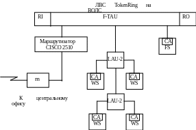 устройства доступа рабочих станций к сети F-TAU (Token Ring Access Unit), имеющие рабочие порты (12, 24) для подключения ВОЛС и порты RI (Ring Input) и RO (Ring Output);