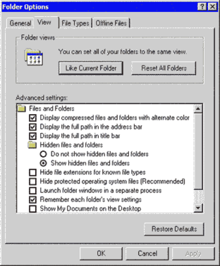Параметры просмотра папок в Windows Explorer.