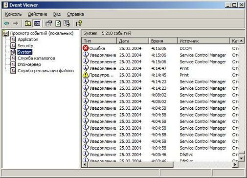 При запуске Windows Server 2003 автоматически запускается служба Event Log (Журнал событий). Windows записывает все события в три журнала (или больше, если установлена служба Active Directory или DNS) и предоставляет возможность просматривать журналы с помощью утилиты Event Viewer (Просмотр событий).