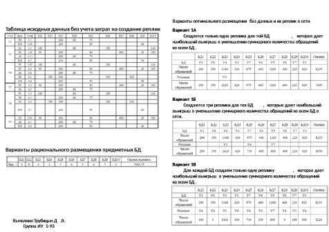 • Выполнен подсчет затрат без учета репликаций баз данных и с учетом