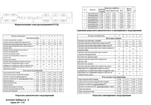• Произведено аналитическое и имитационное (с помощью языка GPSS)