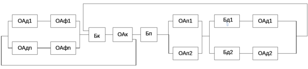 lф1b – среднее значение интенсивности фонового потока запросов, проходящих через ОА, имитирующих работу сервера и дисков, где b=1/(1–р) ;