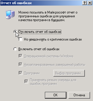 Использование функции "Отчёт об ошибках" на домашнем компьютере под управлением Windows Server 2003, мягко говоря, сомнительно...