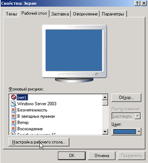 Кнопкой "Настройка рабочего стола" вызовем новый диалог.