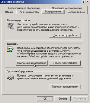 Параметр automount впервые появился в Windows Server 2003, поэтому в XP его нет. Для удобства можно отключить проверку подписей драйверов. Делается это из диалога "Свойства системы", который можно вызвать сочетанием клавиш WIN+Break