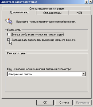 После этого вернитесь на вкладку "Дополнительно" и снимите галочку с появившегося пункта "Запрашивать пароль при выходе из спящего режима".