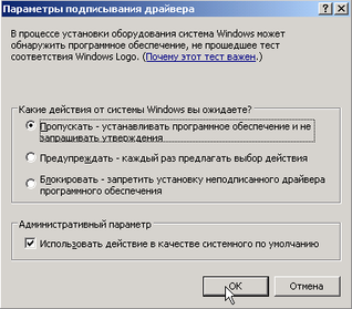 Параметр automount впервые появился в Windows Server 2003, поэтому в XP его нет. Для удобства можно отключить проверку подписей драйверов. Делается это из диалога "Свойства системы", который можно вызвать сочетанием клавиш WIN+Break