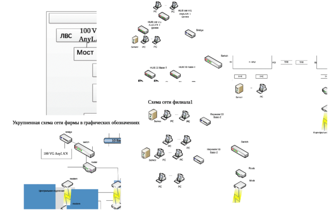 Построена блок-схема сети и структурные схемы ЛВС центрального и удаленных офисов;