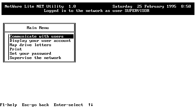 Запустите программу net.exe , которая расположена в каталоге NWLITE. В ответ на сообщение введите имя пользователя - SUPERVISOR .