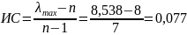 λmax = 3.086 ИС= 0.043 OC = 0.074 (7.4%)