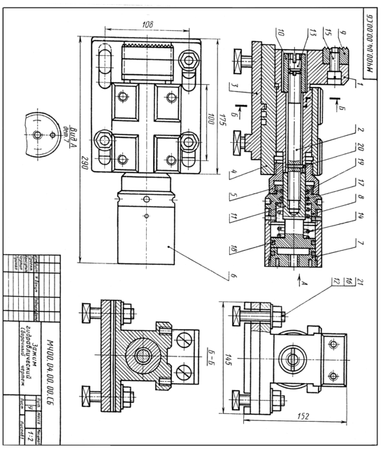 | А2 А3 А3 А3 А3 А4 А3 А4 А3 А4 А4 А3 А4 А4 А4 | 1 2 3 4 5 6 7 8 9 10 11 12 13 14 15 16 17 18 19 20 21 | МЧ00.04.00.00.СБ МЧ00.04.00.01 МЧ00.04.00.02 МЧ00.04.00.03 МЧ00.04.00.04 МЧ00.04.00.05 МЧ00.04.00.06 МЧ00.04.00.07 МЧ00.04.00.08 МЧ00.04.00.09 МЧ00.04.00.10 МЧ00.04.00.11 МЧ00.04.00.12 МЧ00.04.00.13 МЧ00.04.00.14 | Документация Сборочный чертеж Детали Зажим Винт Плита Корпус Гайка Цилиндр Крышка Крышка Пластина Втулка Поршень Болт М16 Пробка Пружина Стандартные изделия Винт А.М16х30.58 ГОСТ 1491-80 Гайка М16.5 ГОСТ 5915-70 Кольцо 0288-033-30 ГОСТ 9833-73 Кольцо 055-060-30 ГОСТ 9833-73 Кольцо СГ 28-17-3 ГОСТ 6418-81 Штифт 4h8x25 ГОСТ 3128-70 Шайба 16.01.019 ГОСТ 11371-78 | 1 1 1 1 1 1 1 1 1 1 1 4 1 1 2 4 1 2 1 1 4 |