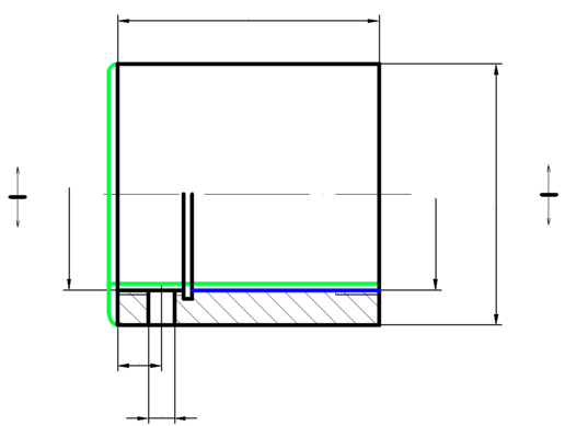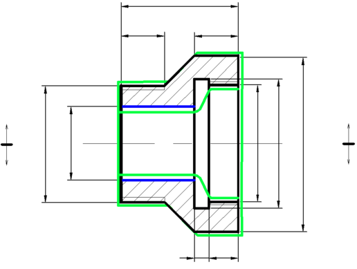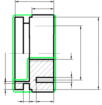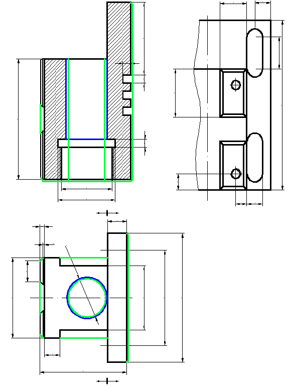 4. А4 (количество числа механически обрабатываемых поверхностей к общему количеству поверхностей деталей) – >0,2 (на эскизе механически обрабатываемые поверхности обозначены линями зеленого цвета) А4 =0,15.