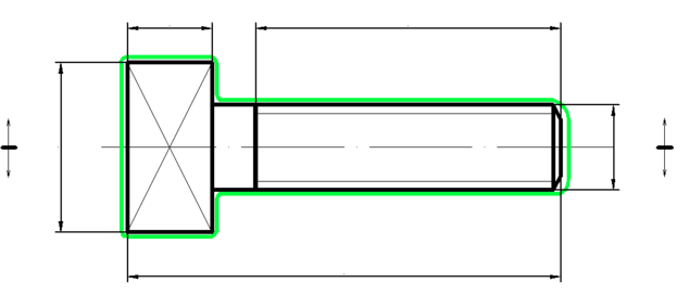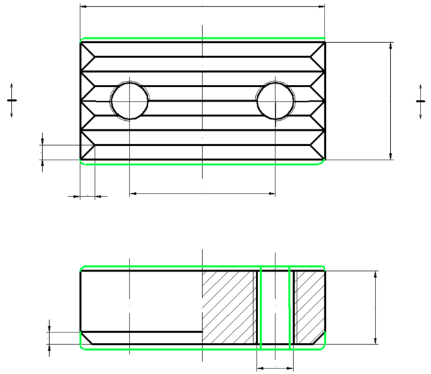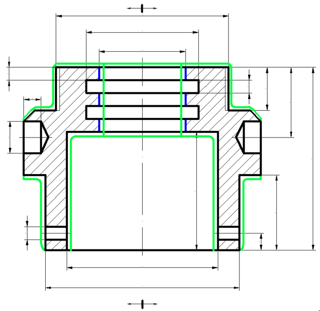 4. А4 (количество числа механически обрабатываемых поверхностей к общему количеству поверхностей деталей) – >0,2 (на эскизе механически обрабатываемые поверхности обозначены линями зеленого цвета) А4 =0,15.