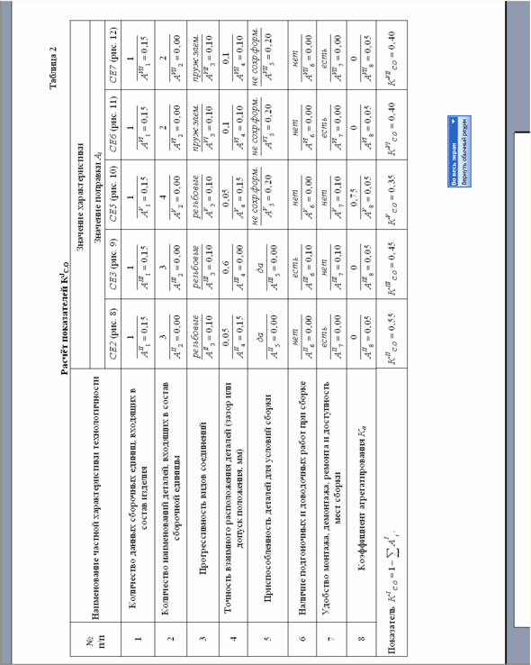 Рассчитанную величину КС.О вносим в граф показателей технологичности, представленный на рис. 4.