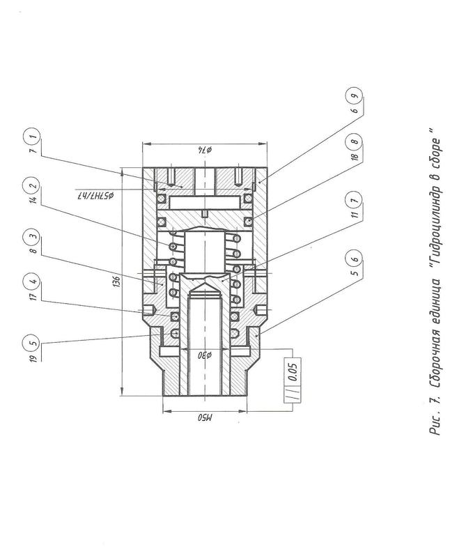 В связи с тем, что при сборке «Гидроцилиндра в сборе» деталь «Пружина» (поз. 14) меняет свою форму, то поправка А5, оценивающая приспособленность деталей и сборочных единиц «Гидроцилиндра в сборе» к условиям его сборки, в соответствии с табл. 1 составляет