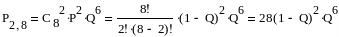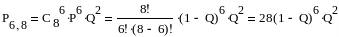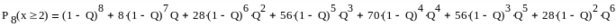 2) Вероятность того, что в связке из 8ми двигателей, по крайней мере, два будут работоспособны, равна