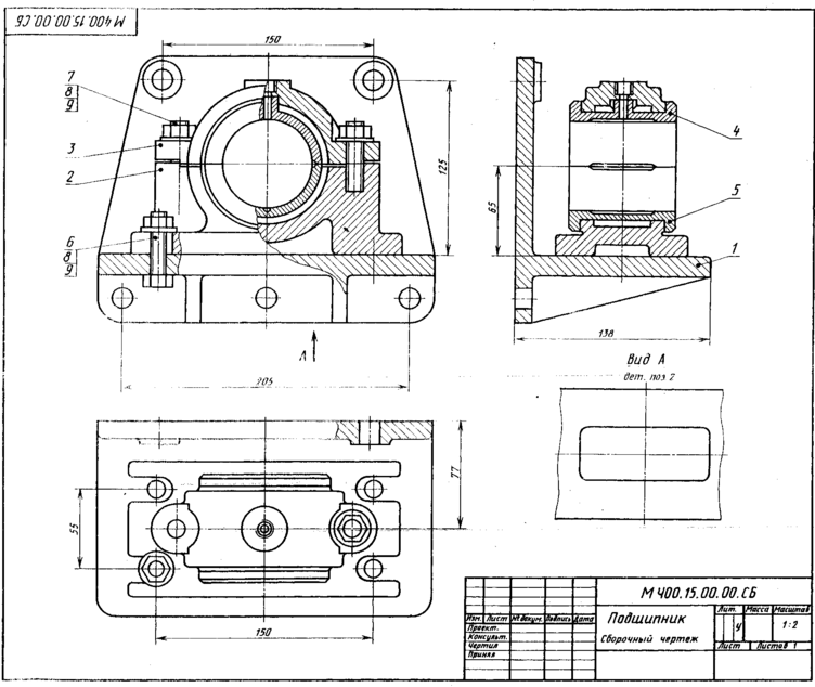 3 — СЧ 15 ГОСТ 1412—79, поз. 4, 5 — БрА9Мц2Л