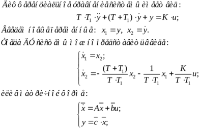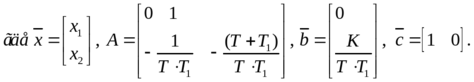 % matrices: dX/dt=AX+BU, where X is state vector of the system, and