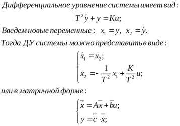 Получение математической модели системы в терминах пространства состояний.