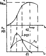 апример, 5 человек обслуживает линию сборки лучше, чем 2. (объем производства растет), а 8 -лучше, чем 5, но уже 9 человек будут мешать друг другу, и объем производства снижается (рис. 4.1а). роизводительность труда (Пт начинает снижаться еще раньше (рис. 4.1,6).
