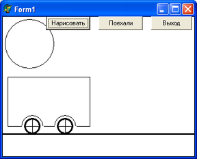 которая, используя процедуру RisTelega, стирает старый рисунок, преобразует координаты и вновь выводит рисунок. При достижении «телегой» правого края формы процедура выключает таймер.