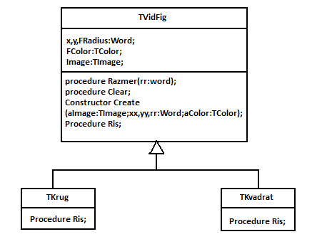 Задача: Разработать иерархию классов Delphi. Использовать виртуальный метод, наследование конструкторов, свойства. Разместить определение классов в отдельном модуле. Класс, позволяющий рисовать окружность некоторого размера с центром в точке, определенной нажатием левой клавиши мыши. Класс, позволяющий рисовать квадрат того же размера с центром в точке, определенной нажатием правой клавиши мыши.