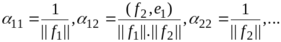 Описанная в доказательстве теоремы 1.1 процедура, называемая процедурой ортогонализации Грама-Шмидта, имеет прозрачный геометрический смысл, который мы поясним на примере перехода от вектора