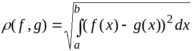 вычисляется как корень квадратный от интеграла от квадрата разности функций: