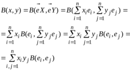 Само же представление билинейного функционала в виде (1), или (2), называется билинейной формой (от переменных