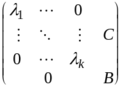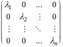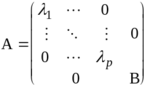 Как видно, эта матрица содержит в левом верхнем углу диагональную подматрицу, заполненную соответствующими собственными числами, под которой все элементы равны нулю. Подматрицы, обозначенные