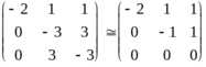Для первого корня (кратности 2) получим однородную систему, матрица которой совпадает с исходной. Ранг матрицы равен 1, и, полагая,