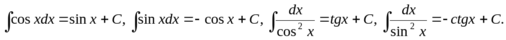 Для того, чтобы вычислить интеграл от функции, проще всего «угадать» первообразную для этой функции по таблице для производных, переписав эту таблицу в обратном порядке. Запишем интегралы для основных элементарных функций.