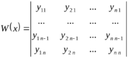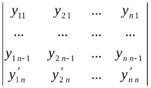 Доказательство. Так как функции линейно зависимы, то одна из них линейно выражается (тождественно) через остальные, поэтому соответствующий столбец определителя Вронского линейно выражается через остальные. Тогда по свойству определителя