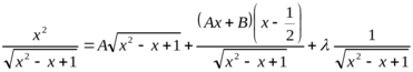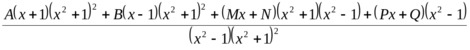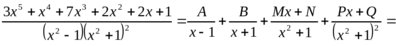 Теперь надо приравнивать многочлены в числителях дробей и определять неизвестные коэффициенты A, B, M, N, P, Q.