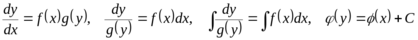 В этом уравнении переменные «можно разделить», т.е. функции от x и dx собрать в правую часть, а функции от y и dy – в левую часть. Затем интегрируем полученное соотношение и получаем соотношение вида