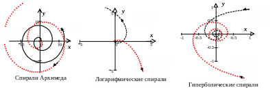 . Стрелками на всех спиралях указано направление возрастания параметра