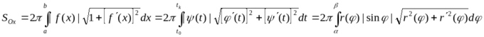Площадь поверхности вращения, образующейся при вращении вокруг оси
