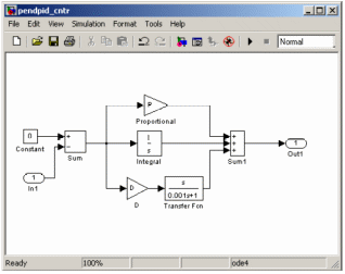Для того, чтобы подключить модель системы управления, необходимо построить эту модель таким образом, чтобы она содержала хотя бы один вход и хотя бы один выход, см. рис.1.24. При этом на входы системы будут поступать сигналы из УМ, которые затем обрабатываются моделью. На выход поступает управляющее воздействие, которое передается в УМ и управляет движением динамической модели.