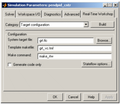 Перейти на закладку Real-Time Workshop и нажать кнопку Build