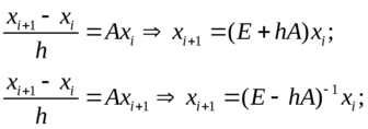 Во втором случае необходимо обращение матрицы (E-hA), что вносит дополнительные вычислительные затраты. Для их уменьшения используются, в частности, методы линейной алгебры, оперирующие с разреженными матрицами.